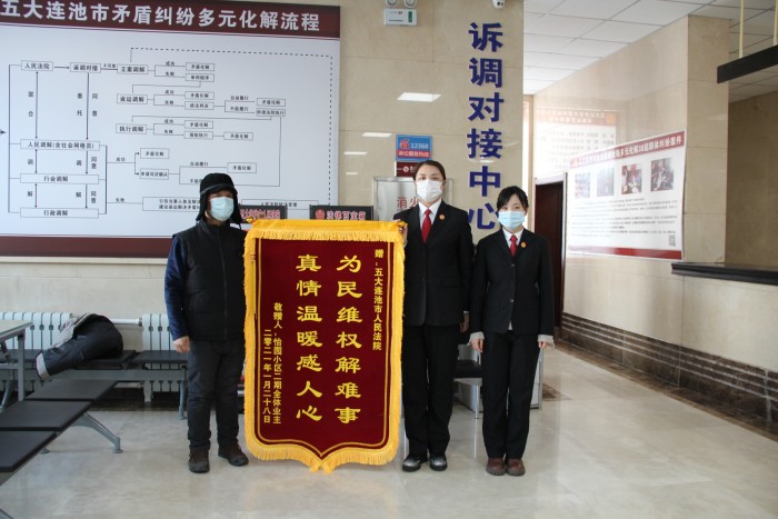 2月5日,五大连池市某小区业主代表来到五大连池法院,代表167户业主将一面印有“为民维权解难事,真情温暖感人心”的锦旗送到了诉调对接中心工作人员手中,感谢法院为百姓解纠纷,并为诉调对接中心工作人员加班加点,耐心细致的工作点赞。