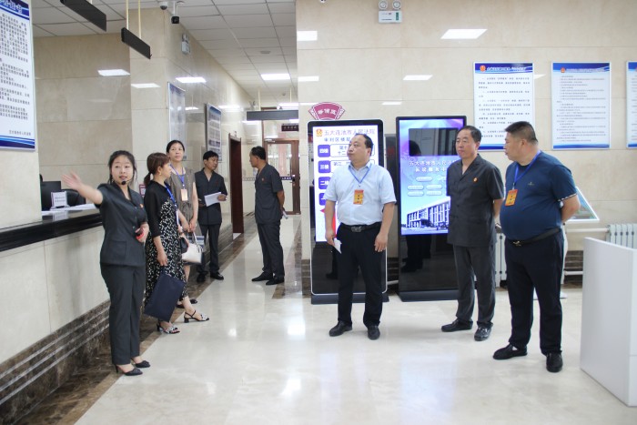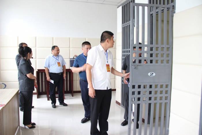 在讲解员的带领下,调查组先后参观了诉讼服务中心、羁押室、执行指挥中心、阅览室等场所,讲解员为参观人员详细讲解了立案工作流程、开庭流程、羁押室功能、执行指挥中心功能、阅览室基本情况,在影音室观看了宣传片,使调查组近距离了解法院建设,感受公正司法、阳光司法过程。